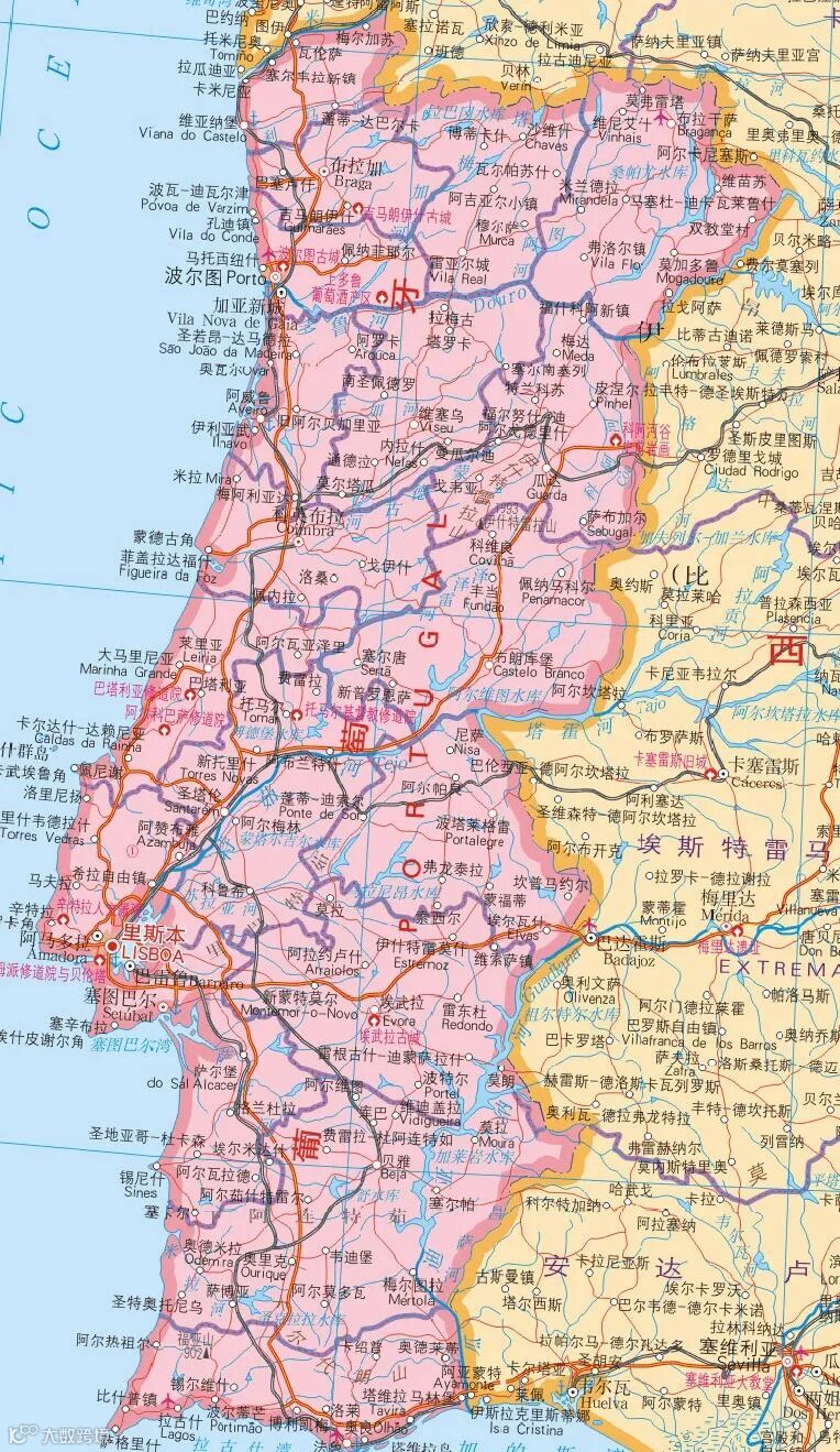 葡萄牙位于欧洲伊比利亚半岛的西南部,东、北连接西班牙,西、南濒临大西洋,国土总面积92225.6平方公里。国土南北狭长,跨亚热带和温带两个温度带,北部属温带海洋性阔叶林气候,南部属亚热带地中海式气候。