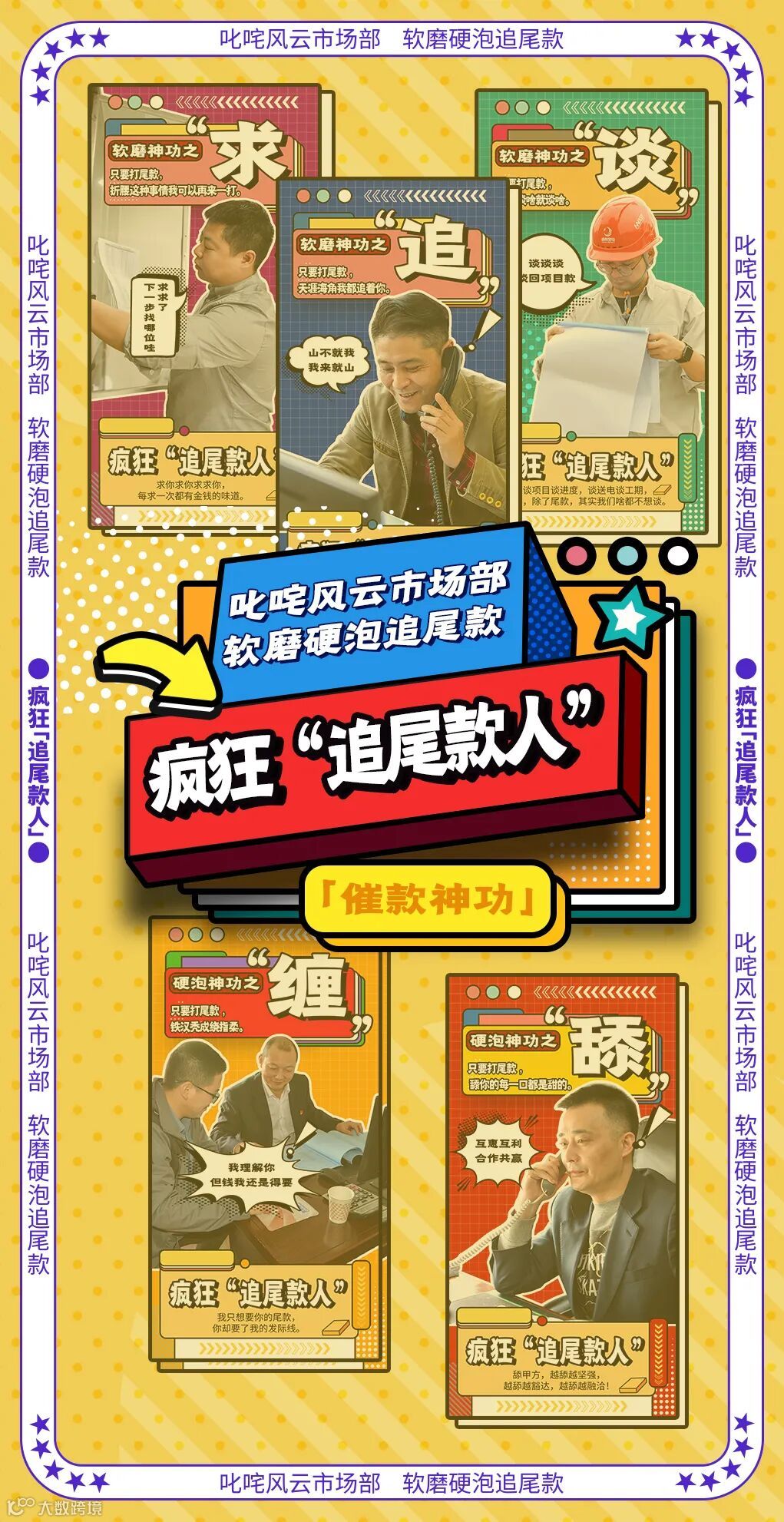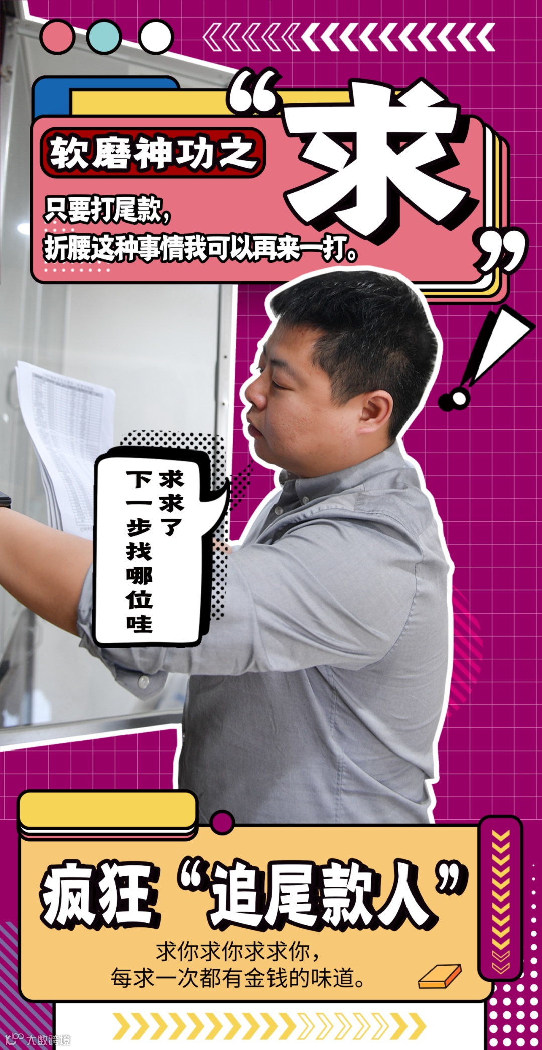 在星电集团,有一群追着“尾款人”付尾款的职业“追尾款人”,也正在上演一年一度的“疯狂追尾款”大戏。他们的标志动作不是捂着钱包,而是捂着额头,他们的标志口头禅不只是“宝贝,快来买”,而是“只要付尾款,别说叫宝贝,叫啥我都成”。为了顺利结回项目尾款,市场营销部追尾款人们使出浑身解数,各显神通,把“催款神功”练就得炉火纯青。