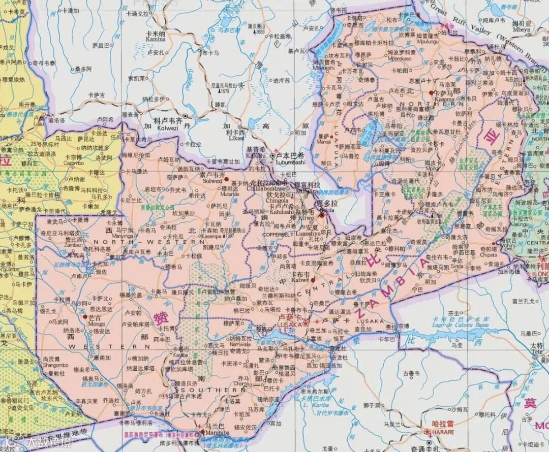 赞比亚地处非洲中南部,周围与8个国家接壤。东接马拉维、莫桑比克,南接津巴布韦、博茨瓦纳、纳米比亚,西邻安哥拉,北靠坦桑尼亚及刚果(金),国土面积75.26万平方公里,大部分地区海拔1000-1500米。赞比亚属热带草原气候,温和凉爽,年平均气温在18-20℃之间。