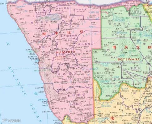 纳米比亚地处非洲西南部,西濒大西洋,北和东北交安哥拉、赞比亚,东邻博茨瓦纳,南毗南非。面积82.4万平方公里,居非洲第15位,世界第34位。全境处于南非高原西部,大部分海拔1000米以上,总体地势东高西低,地形多样。