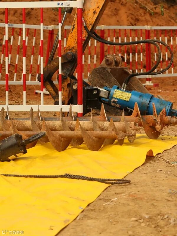 针对现场地形地质的实际情况,星望公司试点了挖机改装旋挖钻机和手持式机械两种机械化挖坑方式。
