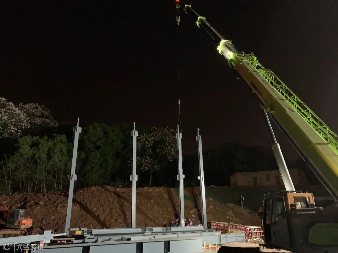 风里来,雨里去。经过13个夜晚的奋战,星宇公司啃下了这块硬骨头,一举顺利吊装完成钢柱52T钢梁106T,建筑主体在春雨滋润下赫然屹立。