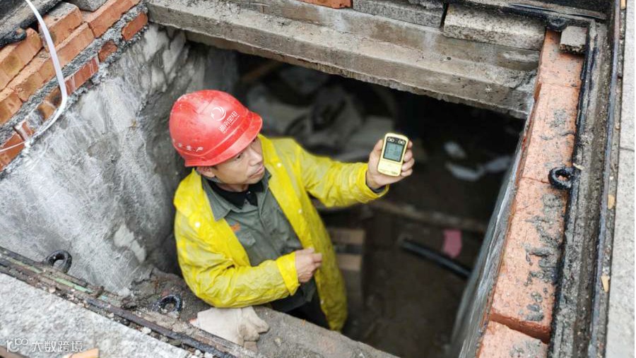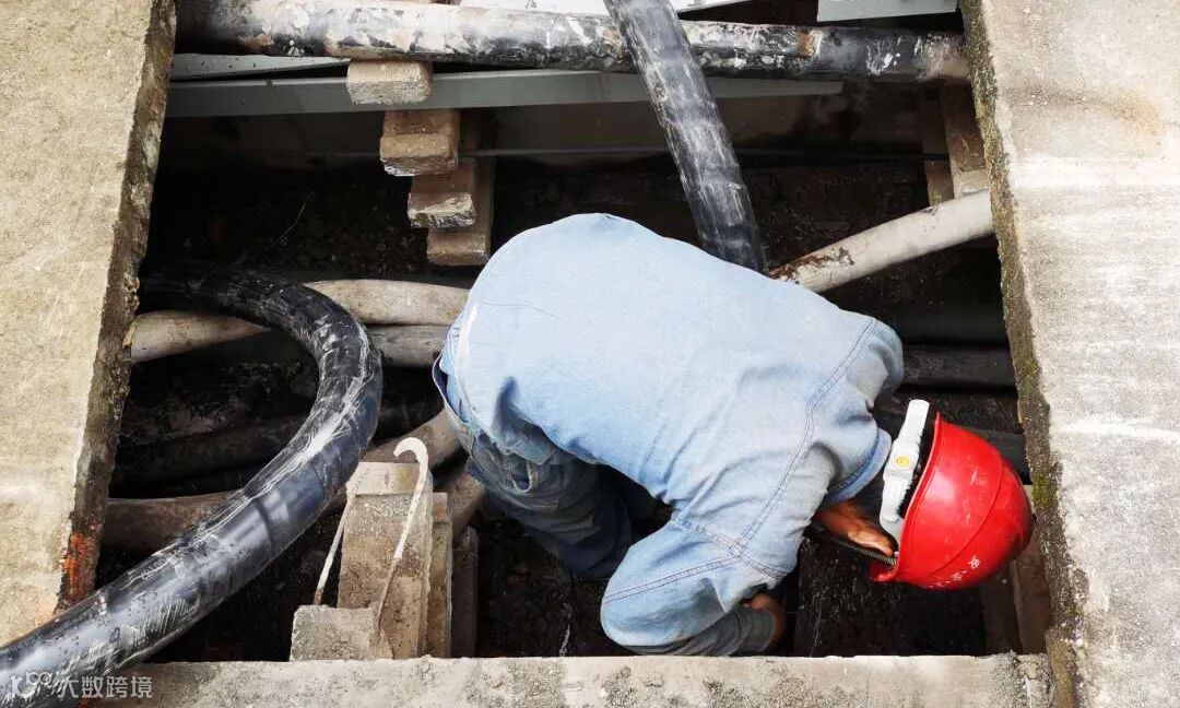 10月16日,西二环桃花岭充电站场旁,星锐公司作业人员正在电缆井里制作电缆头,要将电缆沿新建通道敷设至新建箱变内。