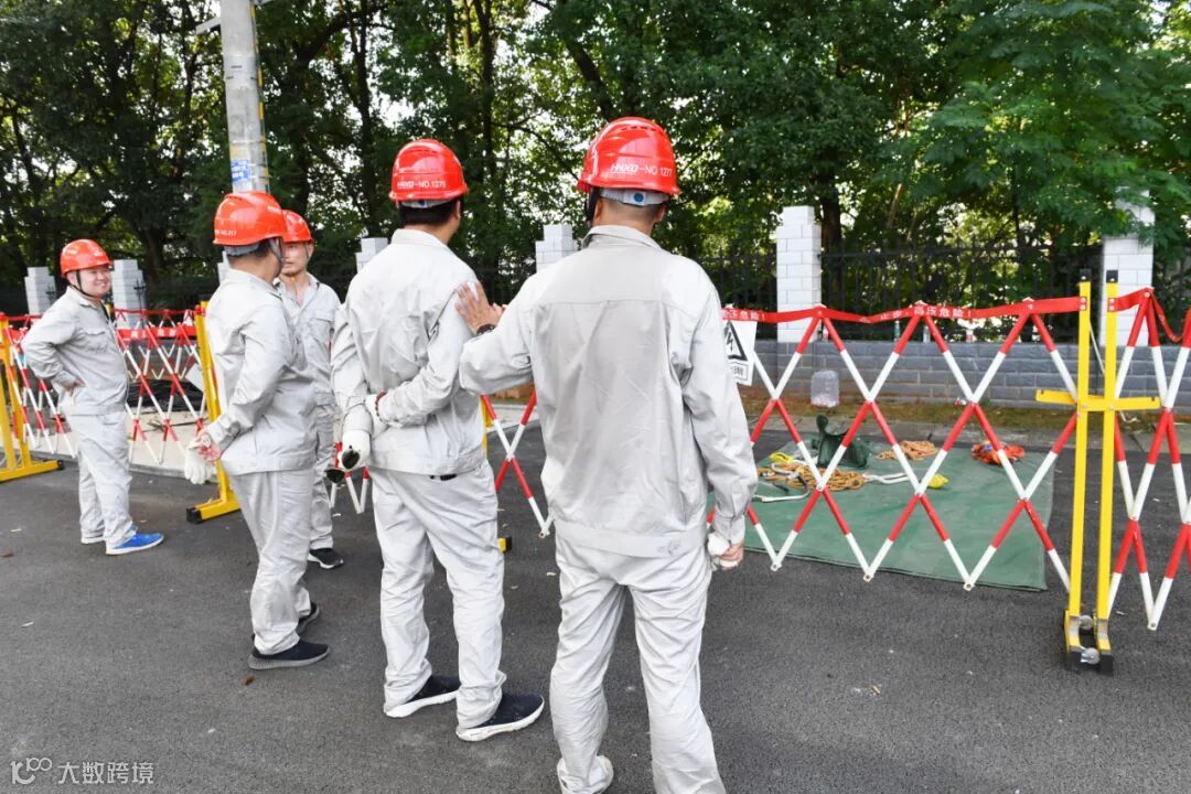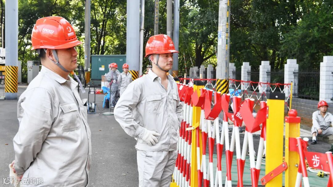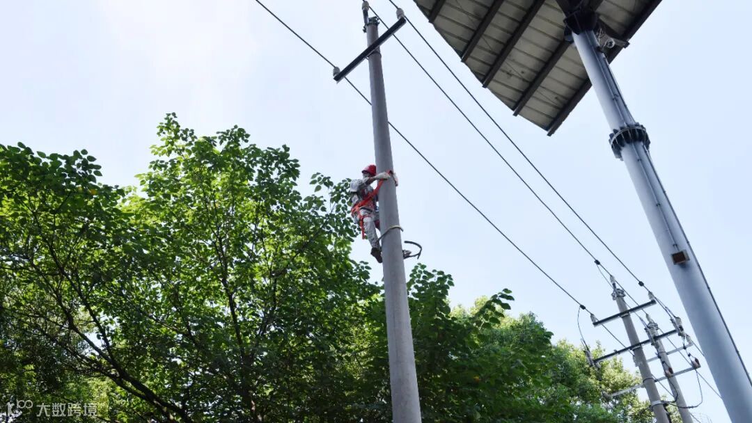 一趟电杆爬下来,他们的外衣已经被汗水浸湿、安全帽脱下后,就像刚洗完头一样。