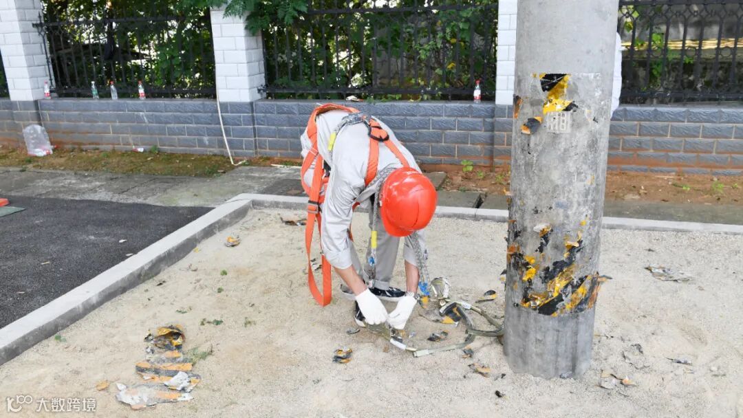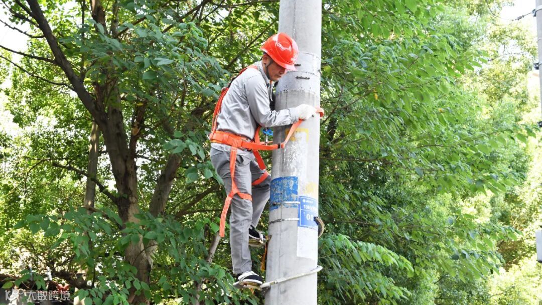 登杆前,一定要检查登高工具和设施,如脚扣、安全带等是否完整牢靠。