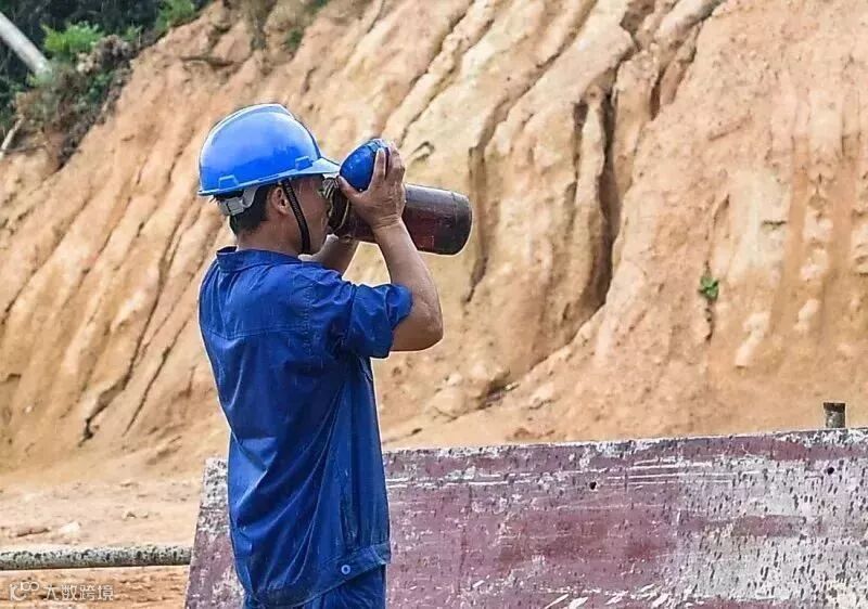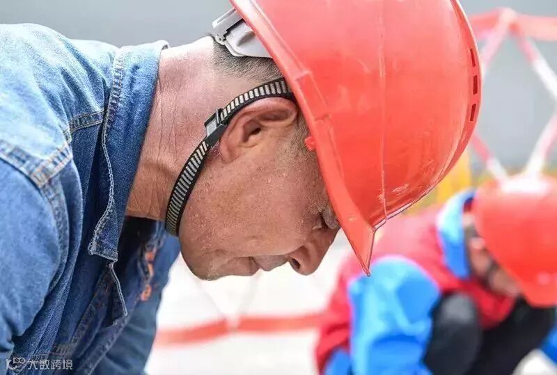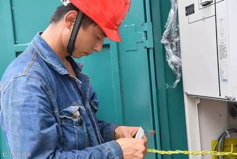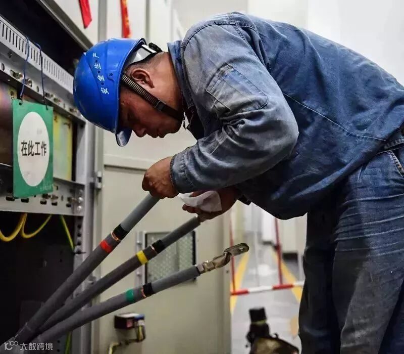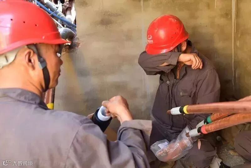 星锐电力公司员工在暴晒的户外进行接线工作。