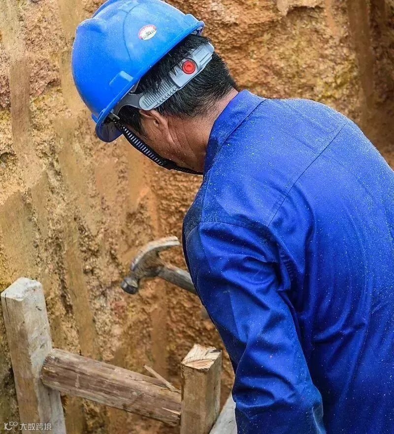 星宇员工顶着40多度高温在北山110千伏变电站户外进行土建工作。