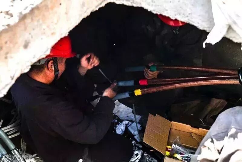 星沙电力公司员工在低矮的电缆井里进行电缆头中间头、中端头制作,试验,接入等工作。
