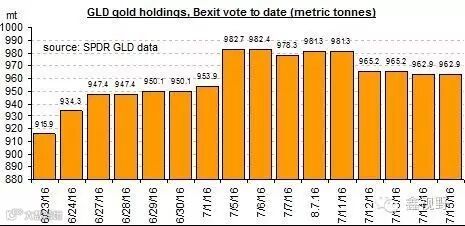 英国脱欧投票表决后黄金ETF基金持金量变化
