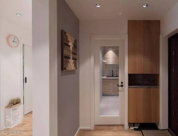 ▲ 板材打造小户型,量身制作温暖,质感小窝,入户玄关柜,厨房,照壁,后砌隔断墙将餐厨动线作自然分隔。