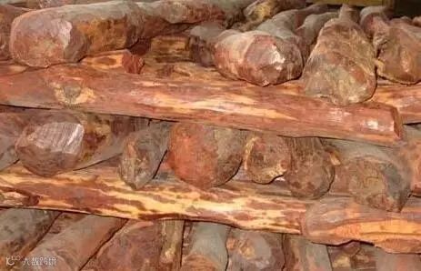 学名交趾黄檀,又名大红酸枝,是红酸枝类中木性最好、应用最广泛的木材。这种木材产自老挝、越南,通常呈深红色,有黑色条纹(俗称黑筋),带酸香气。