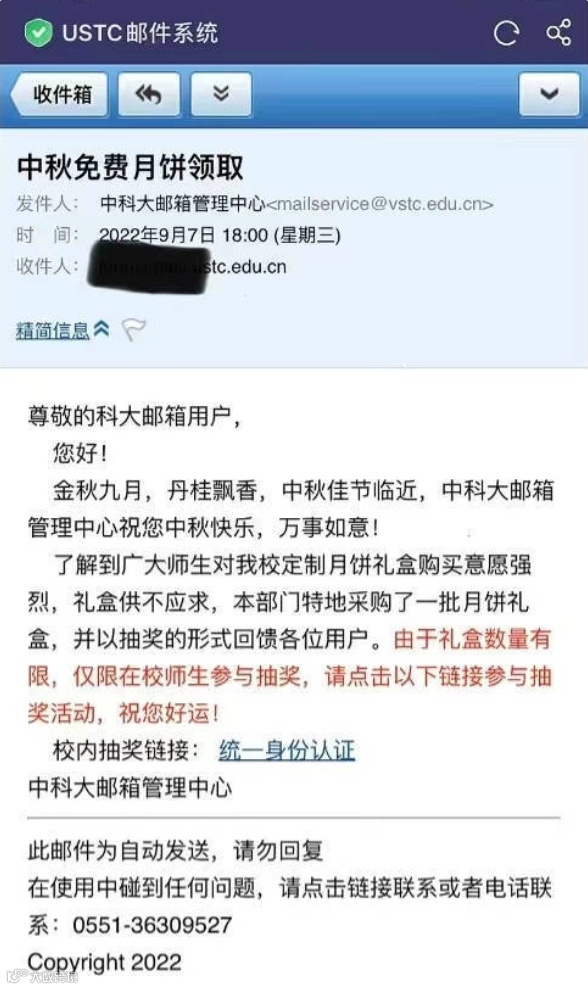 “免费送月饼”的“钓鱼”邮件
