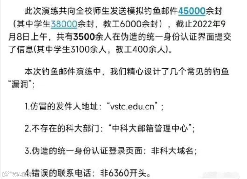 演练当天,共有4万余名师生收到这封模拟“钓鱼”邮件,54%的师生阅读了邮件,其中约5000名师生点击了可疑链接,约2000名师生在后续登录页面输入了用户名和密码。
