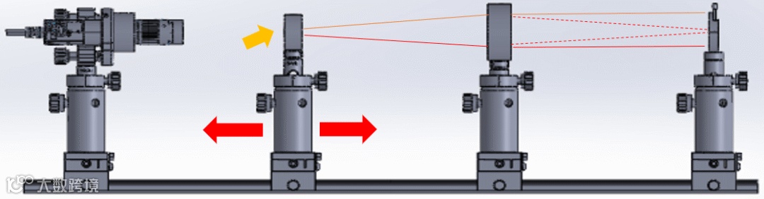 激光器、光圈和透镜必须对准同一光轴。理想情况下,这些组件即使在光轨上平移,其光轴也不应该改变。安装在光学导轨载体上的平台可以实现垂直于导轨方向的水平运动。