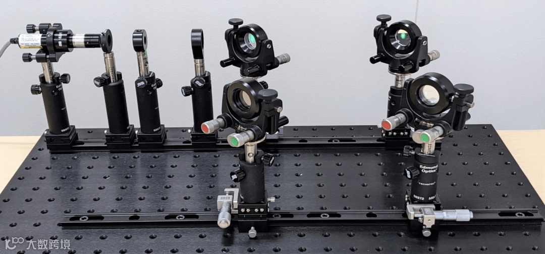图 2: 采用爱特蒙特光学( Edmund Optics® )公司的现成部件组装的台式马赫-曾德尔干涉仪(Mach-Zehnder Interferometer)系统