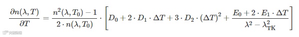 材料 dn/dT 的完整方程式为: