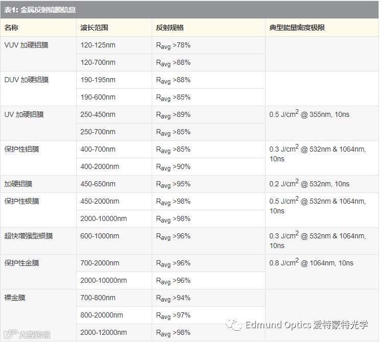 Edmund Optics Products – 标准金属镀膜相关产品:●●