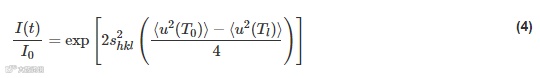 超快激光器引起的衍射强度变化受 Debye-Waller 效应控制,计算公式为: