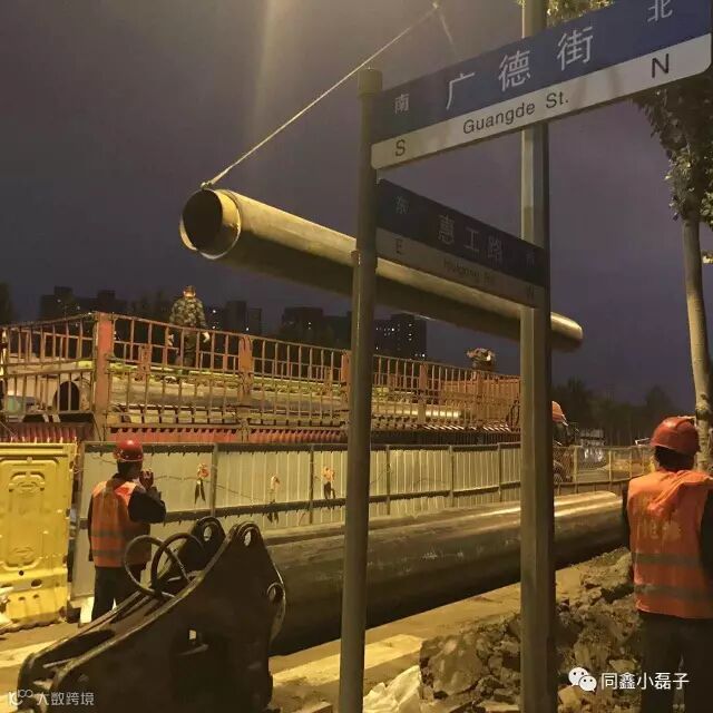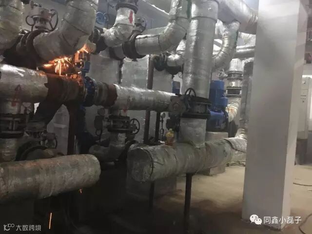 远达与滨河联网一次网工程,夜间管线施工,管道焊接 施工单位:绿地供热公司