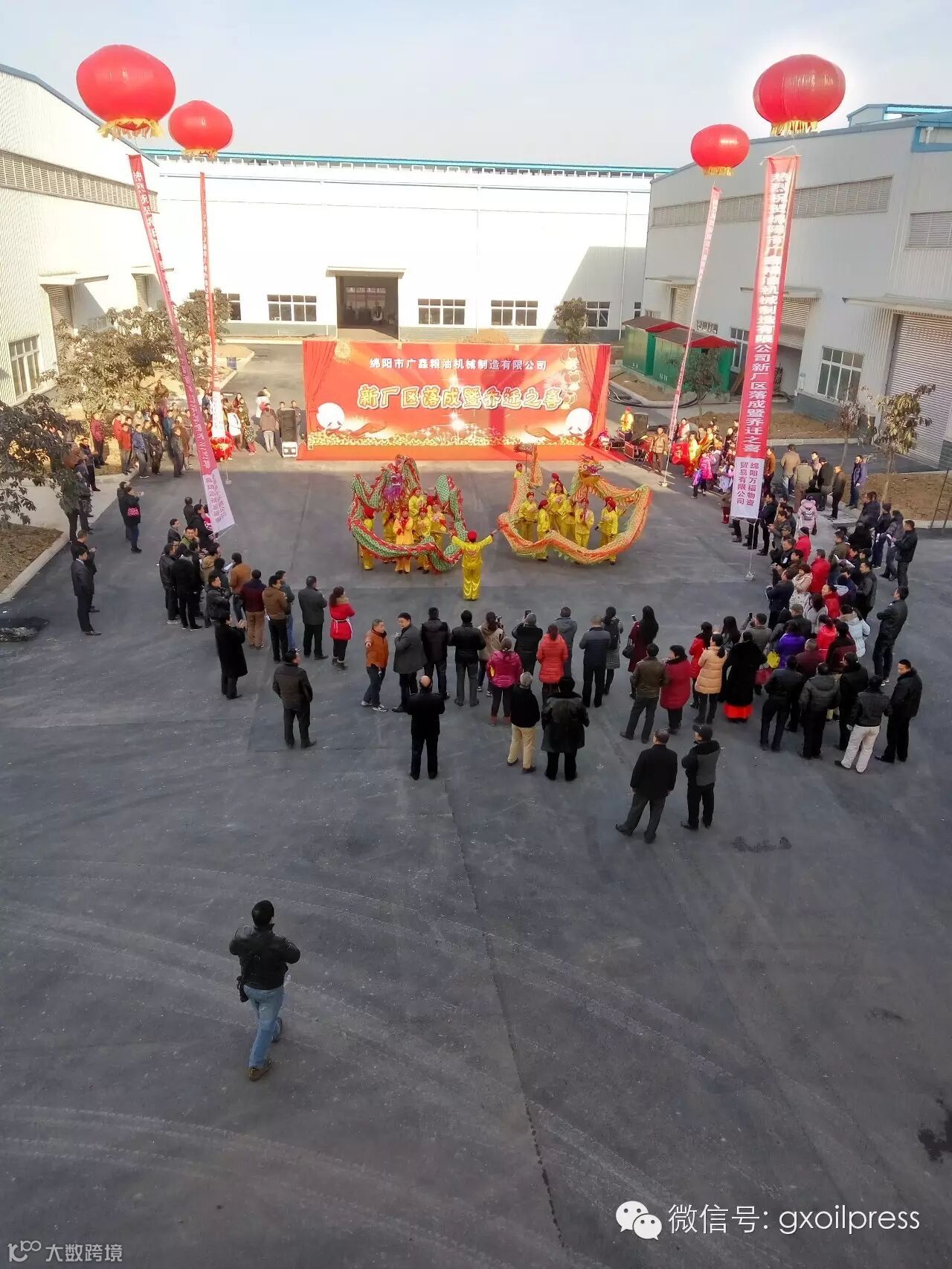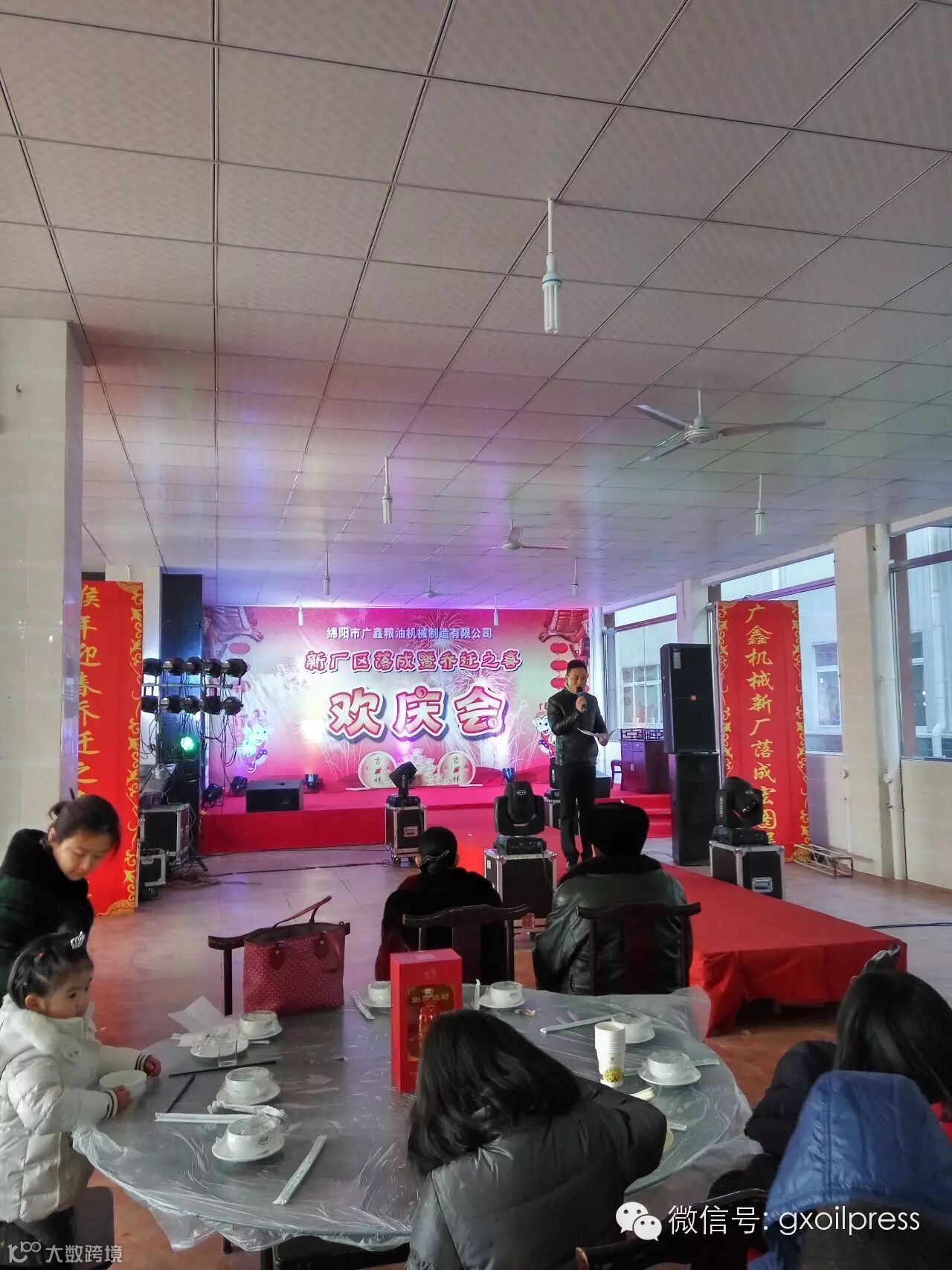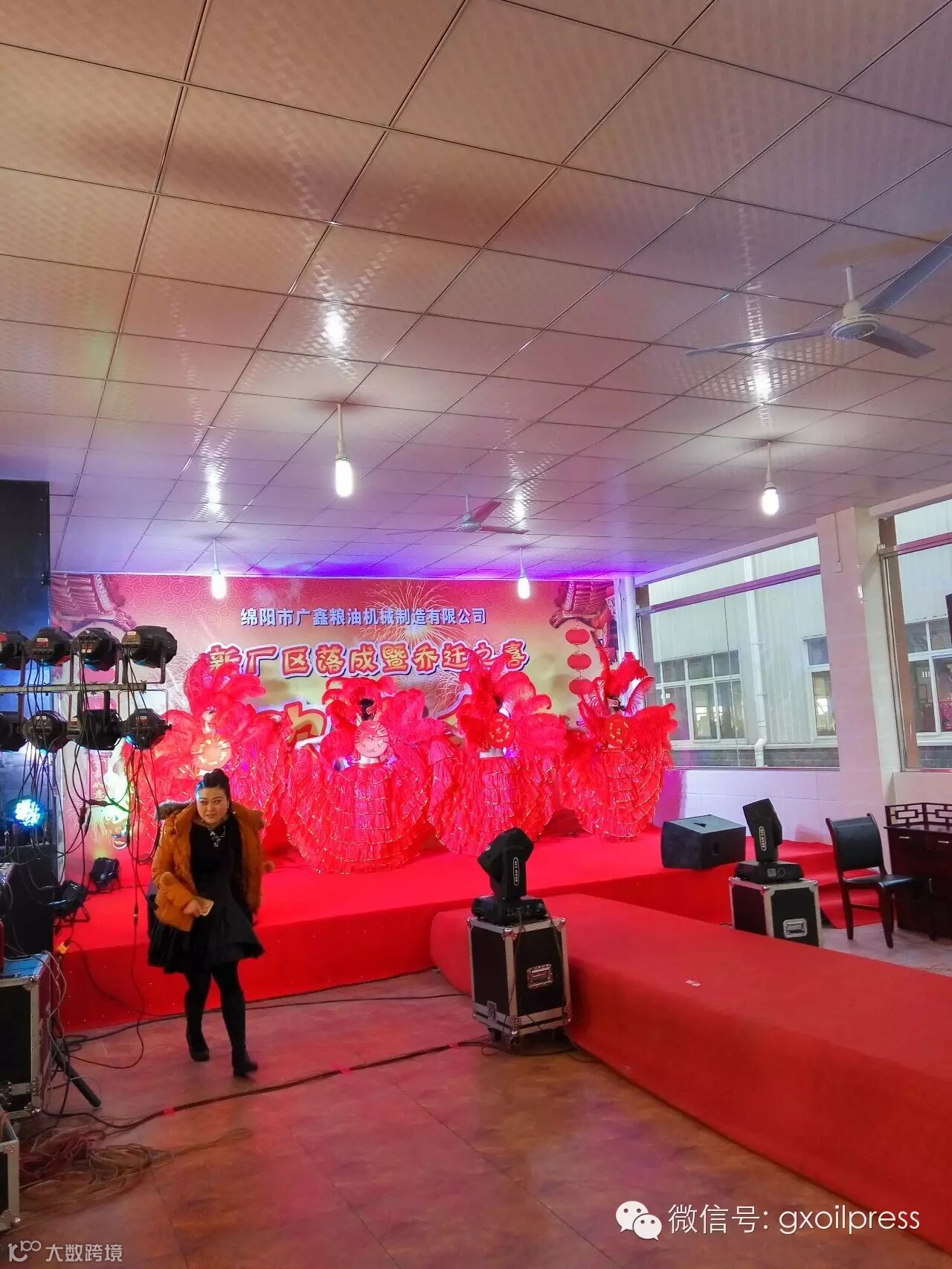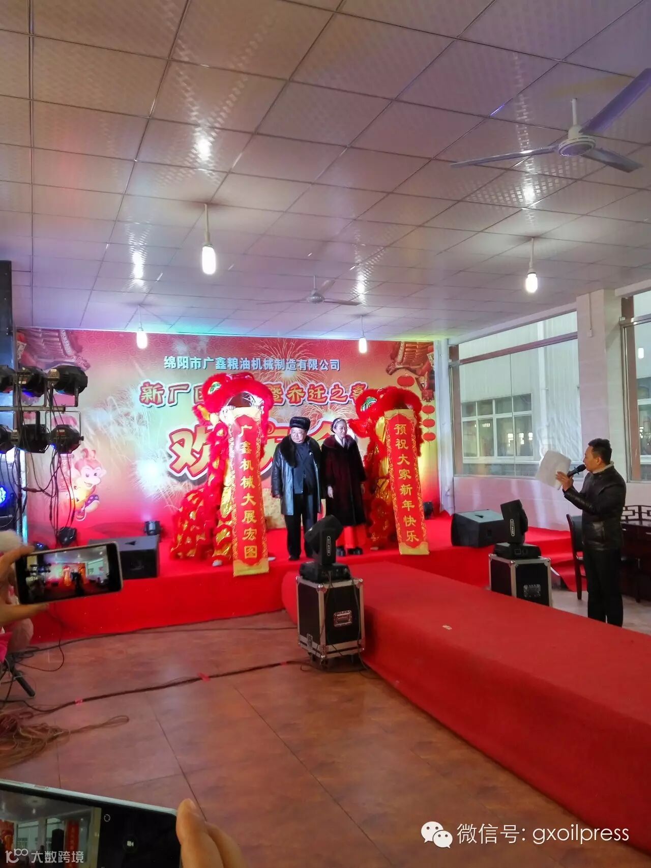 四方宾朋和广鑫全体员工见证了这个欢欣鼓舞,令人振奋的时刻。龙腾狮跃,锣鼓喧天,祥和之气,风景独好。在欢庆会上,董事长黄总一曲《众人划桨开大船》唱出了广鑫人团结奋进的精神面貌,也正是在黄总的带领下,广鑫人经过30年的奋斗,在全国榨油机行业中成为领头羊。