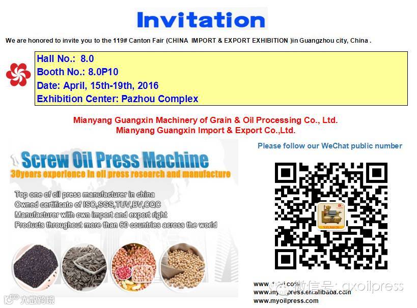关注我们的的微信,您身边的油脂制造专家:gxoilpress