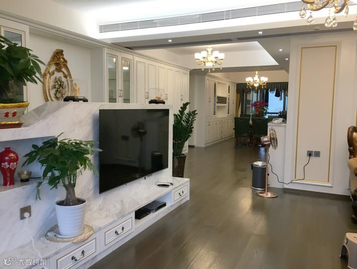 白色调时尚温馨不突兀,客厅的白色墙面发出的是淡雅清新的现代简欧味道,时尚的欧式沙发与爵士白电视柜的呼应,让整个客厅营造出时尚、高贵、轻松、愉悦的视觉感空间,营造出一个朴实之中的时尚简欧家居设计。