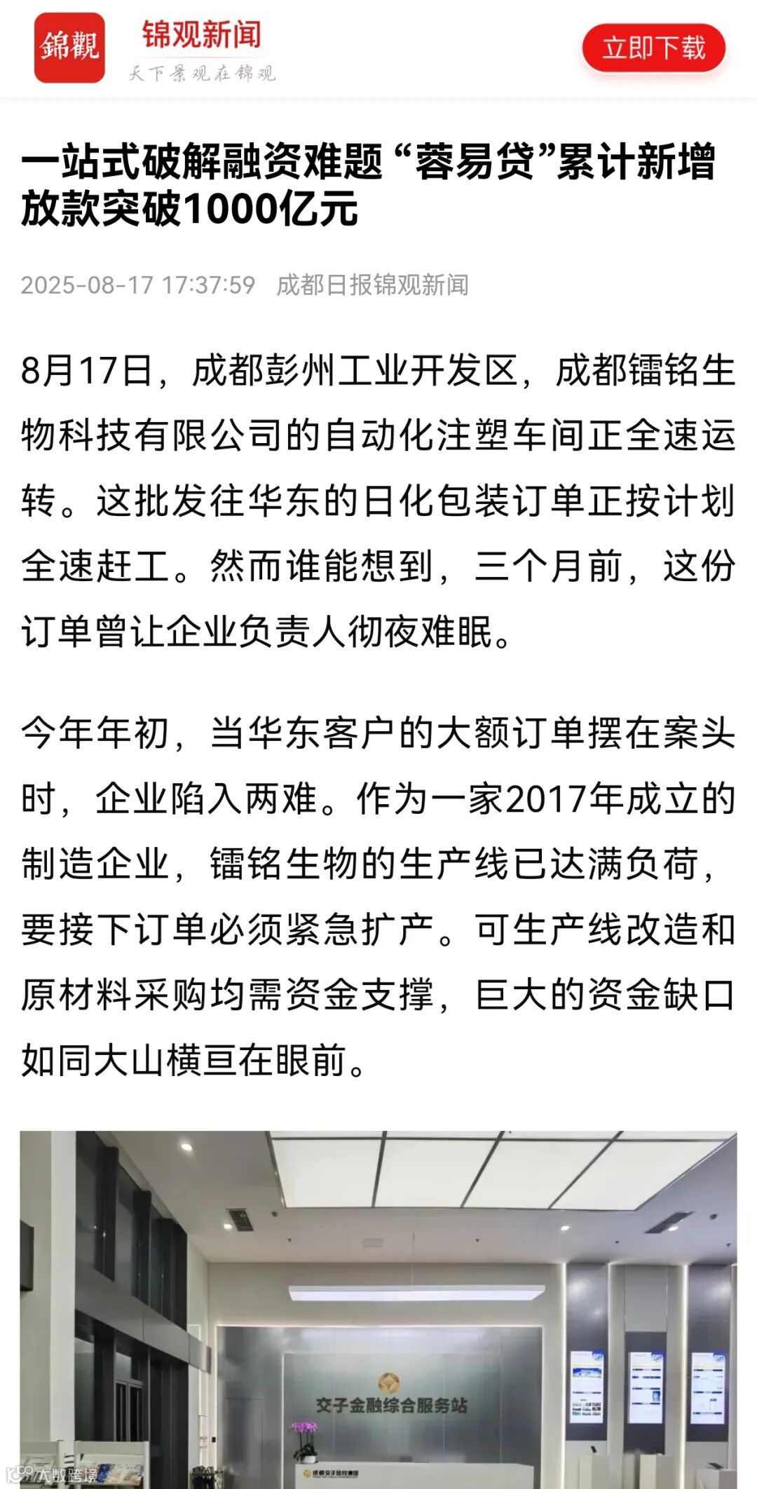 这种“线上智能匹配 + 线下精准服务”的模式,已在蒲江生态产业园、西部氢能产业园等多个重点园区落地生根,“蓉易贷”平台正构建一张覆盖全成都的金融服务网络,用科技赋能金融,让普惠阳光照亮更多民营企业的发展之路。