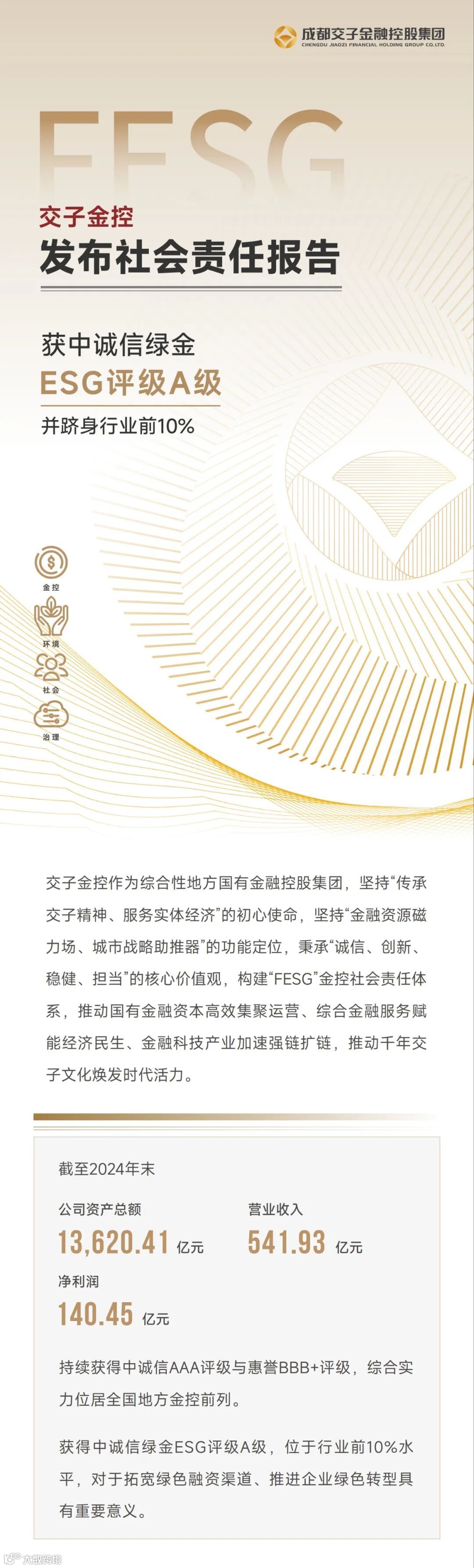 交子金控2024年度“FESG”社会责任工作报告获中诚信绿金ESG评级A级