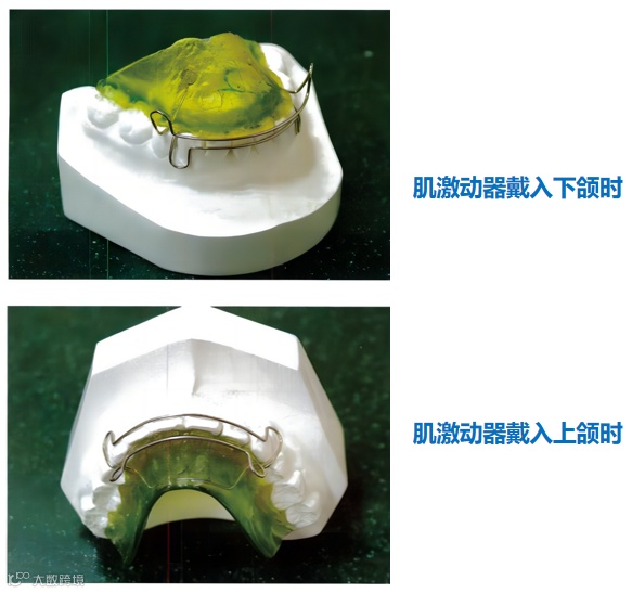下颌功能性前伸或有轻度上下颌骨骨骼发育异常的Ⅲ类错颌,也可以选用肌激动器治疗,但应注意训练患者下颌向后。