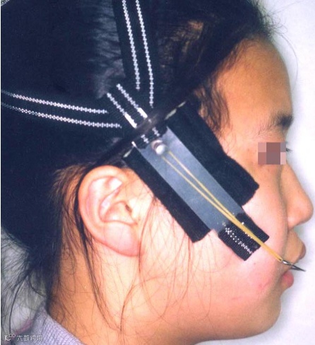 ⑤肌激动器与口外弓的联合应用。将口外弓与肌激动器联合起来,组成口外弓肌激动器,充分发挥两者的互补作用,用于早期矫治安氏Ⅱ类下颌后缩伴有下颌平面角增大,或合并上颌前突趋势病例的矫治。