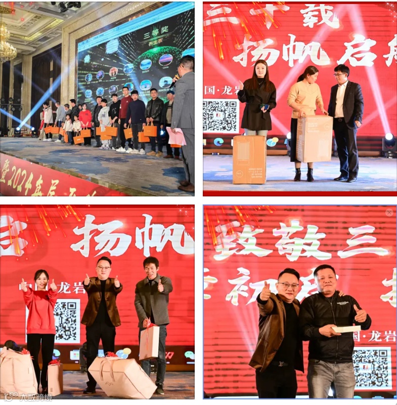 随后公司董事长陈盛灼以及公司总经理陈明祥为2024年优秀员工、最佳成长员工、优秀业务经理、优秀主管和从事20年以上的老员工颁发荣誉奖状和奖金,并与他们合影留念。