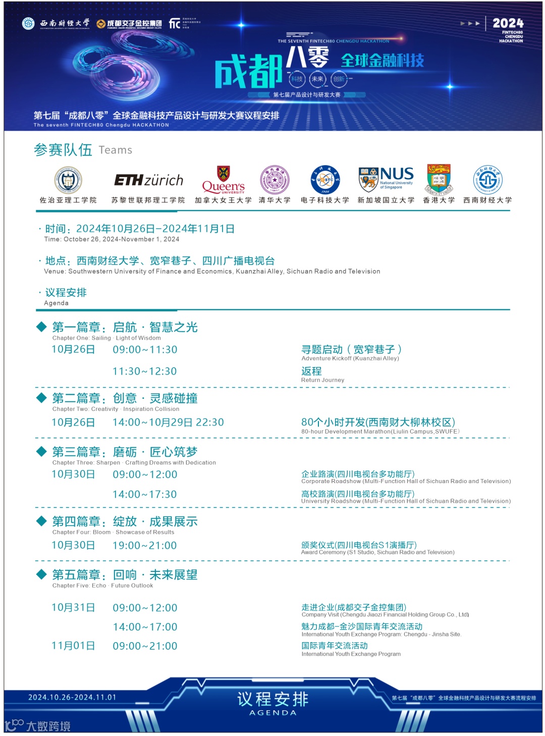 2024年,“成都八零”大赛被列为成都市金融科技产业链的32项重点工作之一,比赛将聚焦挖掘项目和人才两大重点,贯穿“以赛促学,以赛促产”的理念,不断提高大赛的平台作用和国际影响力,助力我国金融和科技行业的高质量发展。
