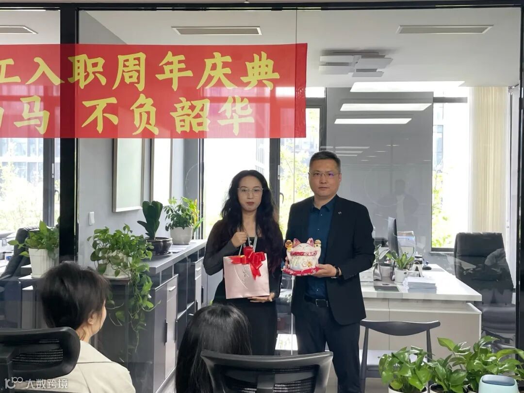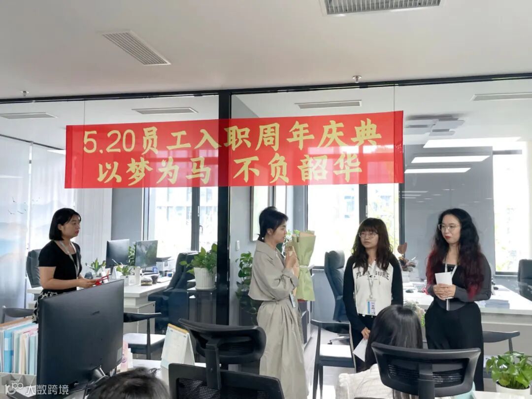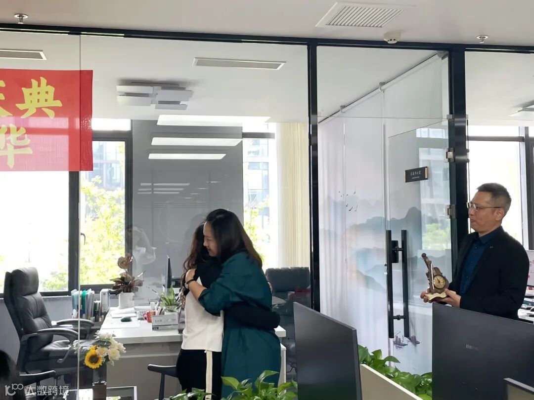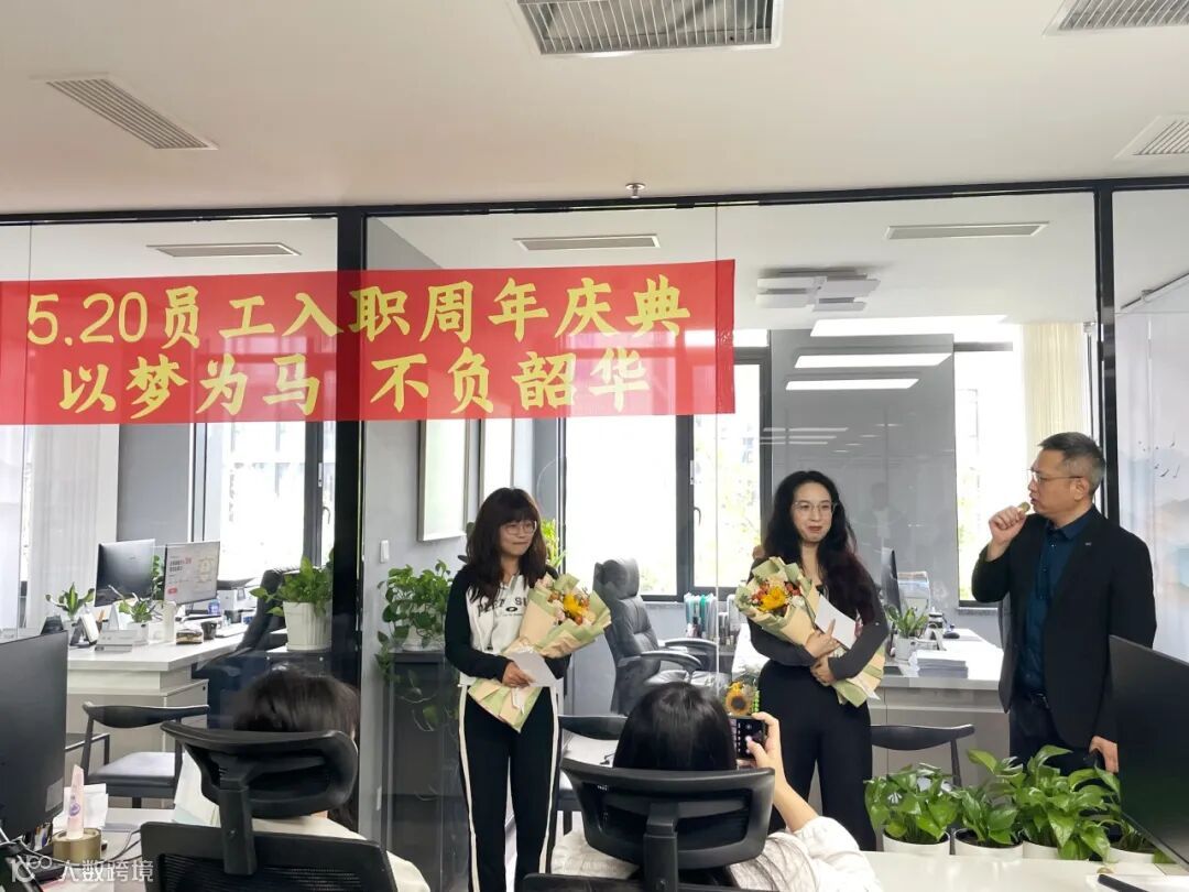 技术研发部运营总监致辞并送上鲜花, 她们不畏辛苦,对待工作尽职尽责,感谢两位员工风雨兼程,一路向前,这些年的艰苦奋斗。