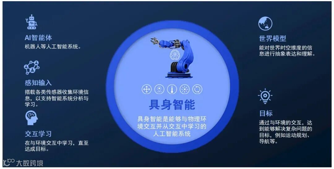 具身智能(Embodied Intelligence)是指智能体(如机器人或生物体)通过与物理环境的交互来实现感知、学习和行动的能力。与传统的“纯计算智能”不同,具身智能强调智能体必须拥有物理实体,并通过身体与环境的互动来发展认知和行为能力。具身智能强调模型在物理环境中的交互能力,并致力于实现机器人与环境的深度结合。