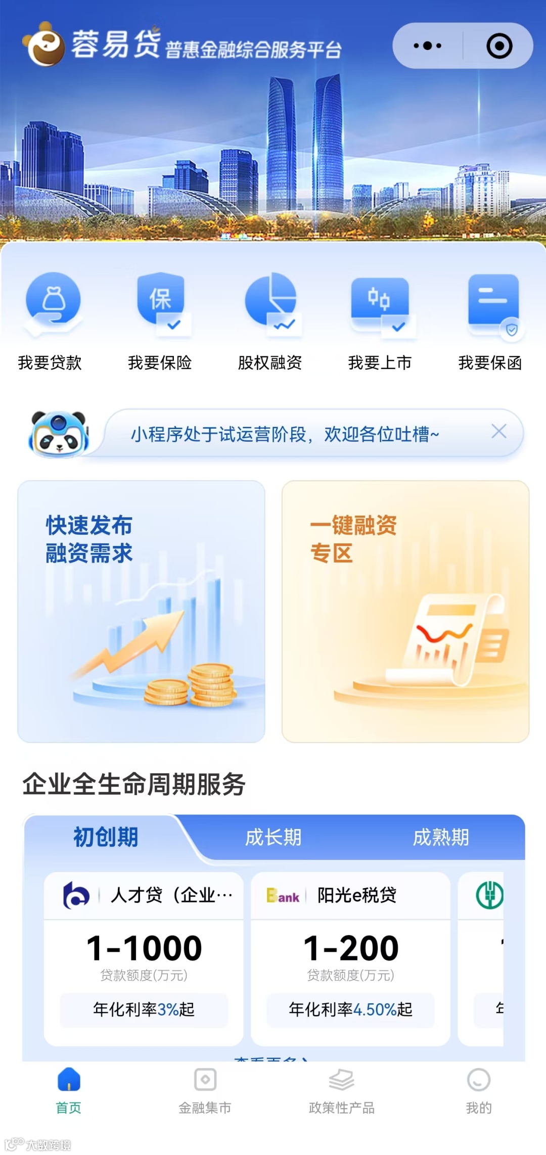 目前,该平台已上线网页版、微信小程序,通过“统一入口”汇聚全市普惠金融产品,持续为用户全方位提供在线融资服务。