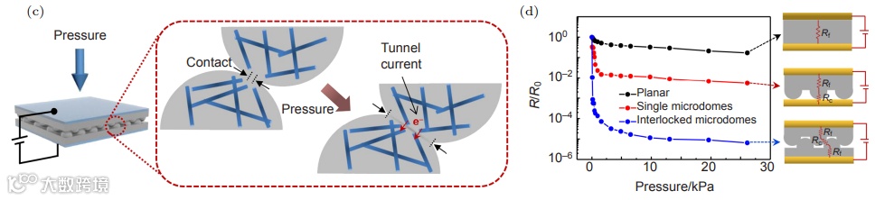 柔性压阻式压力传感器本身作为一种“媒介”,通过将施加的压力转化为电阻信号而对外界刺激做出响应,为了设计综合性能优异且实用性强的柔性压阻式压力传感器,需要一些性能参数来定量评估器件的综合性能。这些性能参数包括: 灵敏度、传感范围、响应时间、弛豫时间、迟滞及稳定性等。