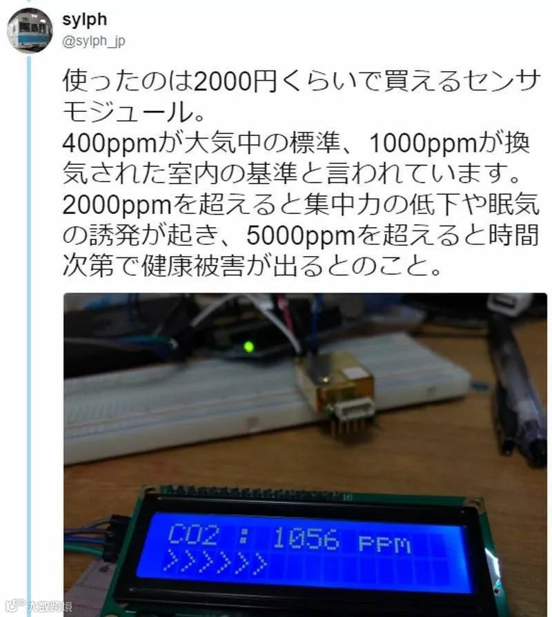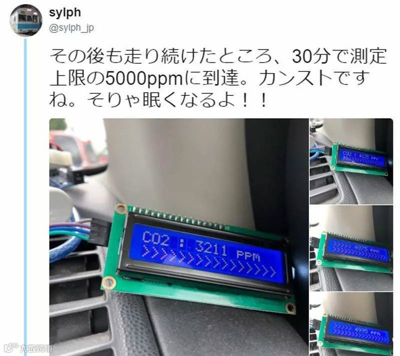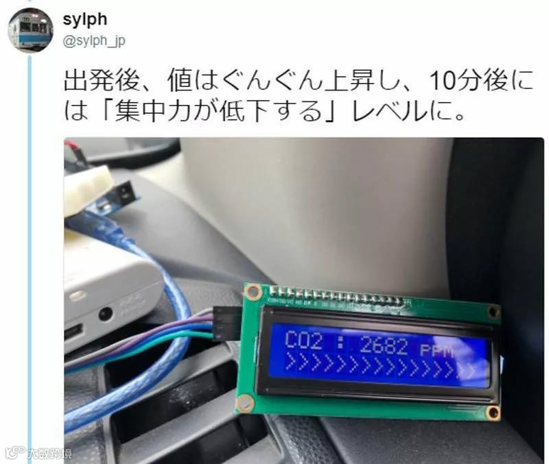 日本有位网络达人曾做过这样的一个测试,用二氧化碳传感器自制的简易工具测量车内环境下的二氧化碳浓度,可以直观的看到不同浓度下人体的人体感受。