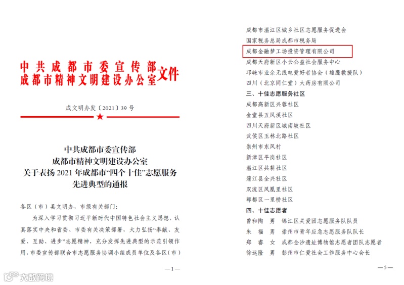 因疫情防控表现突出,梦工场公司党支部受成都市委组织部通报表扬。