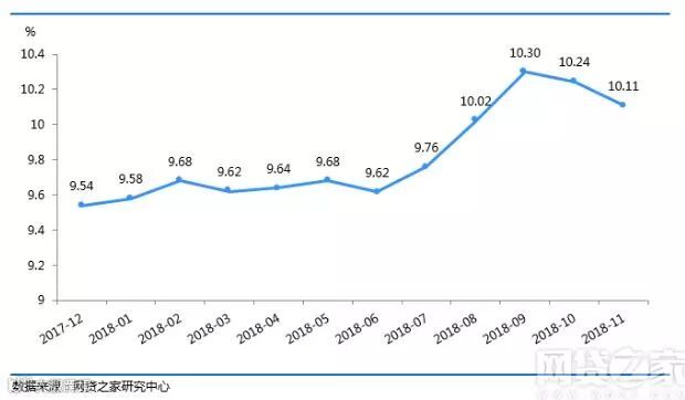 网贷之家数据显示,11月网贷行业综合收益率为10.11%,环比下降0.13%。
