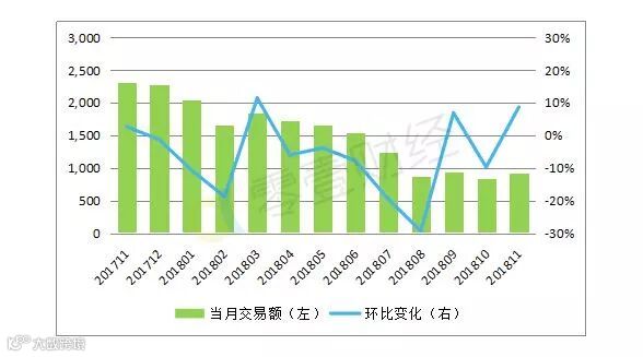 零壹财经的数据显示:11月网贷行业成交量为916亿元,环比上升8.7%。
