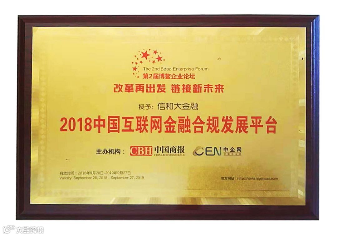 信和大金融荣获“2018中国互联网金融合规发展平台”