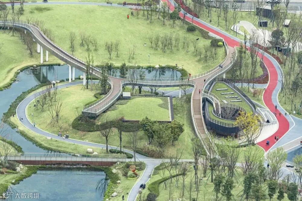 交子公园在建设之初,就充分结合水资源和绿地资源保护,通过中心湖生态系统、生态绿地、雨水花园储水系统等措施,构建3.8万平米水下森林形成生态自净,实现雨水的收集、过滤、净化及回用,在保留足够面积的公共绿地的同时合理分布水环境网络和绿地网络,充分彰显着海绵城市“渗、滞、蓄、净、用、排”的基本理念。