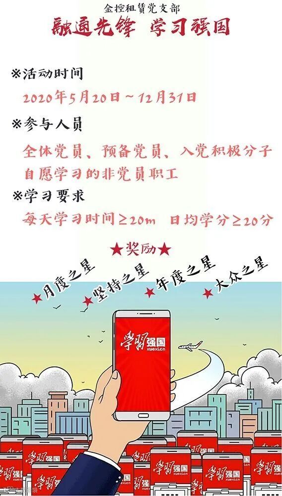 “这次‘学习强国’积分活动覆盖范围,我们扩大到了全体员工,包括党员和自愿参加学习的非党员职工。”据金控租赁党支部党务工作人员介绍,这次活动最大的特点除了覆盖范围,还有就是持续时间,从5月一直到年底,持续8个月。