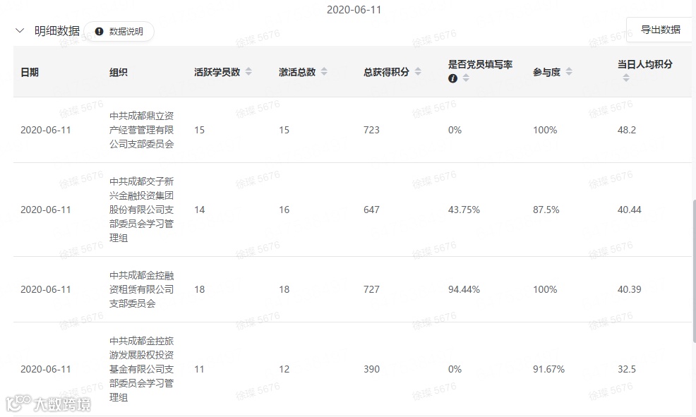 统计近半个月“学习强国”积分后台数据,鼎立党支部、金控旅游基金党支部、交子新兴党支部、金控租赁党支部长期位列前四,日均积分达到30分以上。