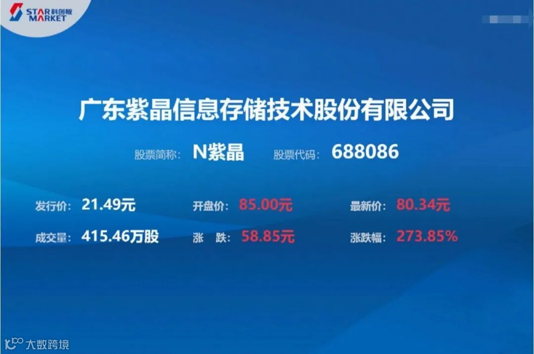 ▼ 2020年2月26日,成都航天工业互联网基金投资的广东紫晶信息存储技术股份有限公司正式在上海证券交易所科创板挂牌上市,股票简称“紫晶存储”,股票代码688086。