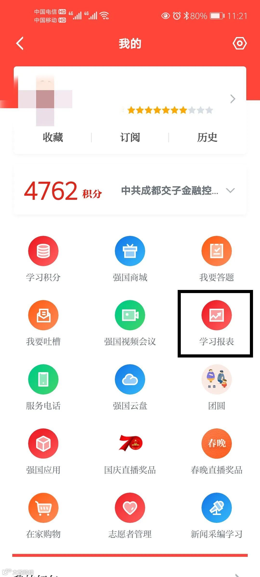 学习强国→“学习强国”积分9分=“交子学习进行时”积分1分。