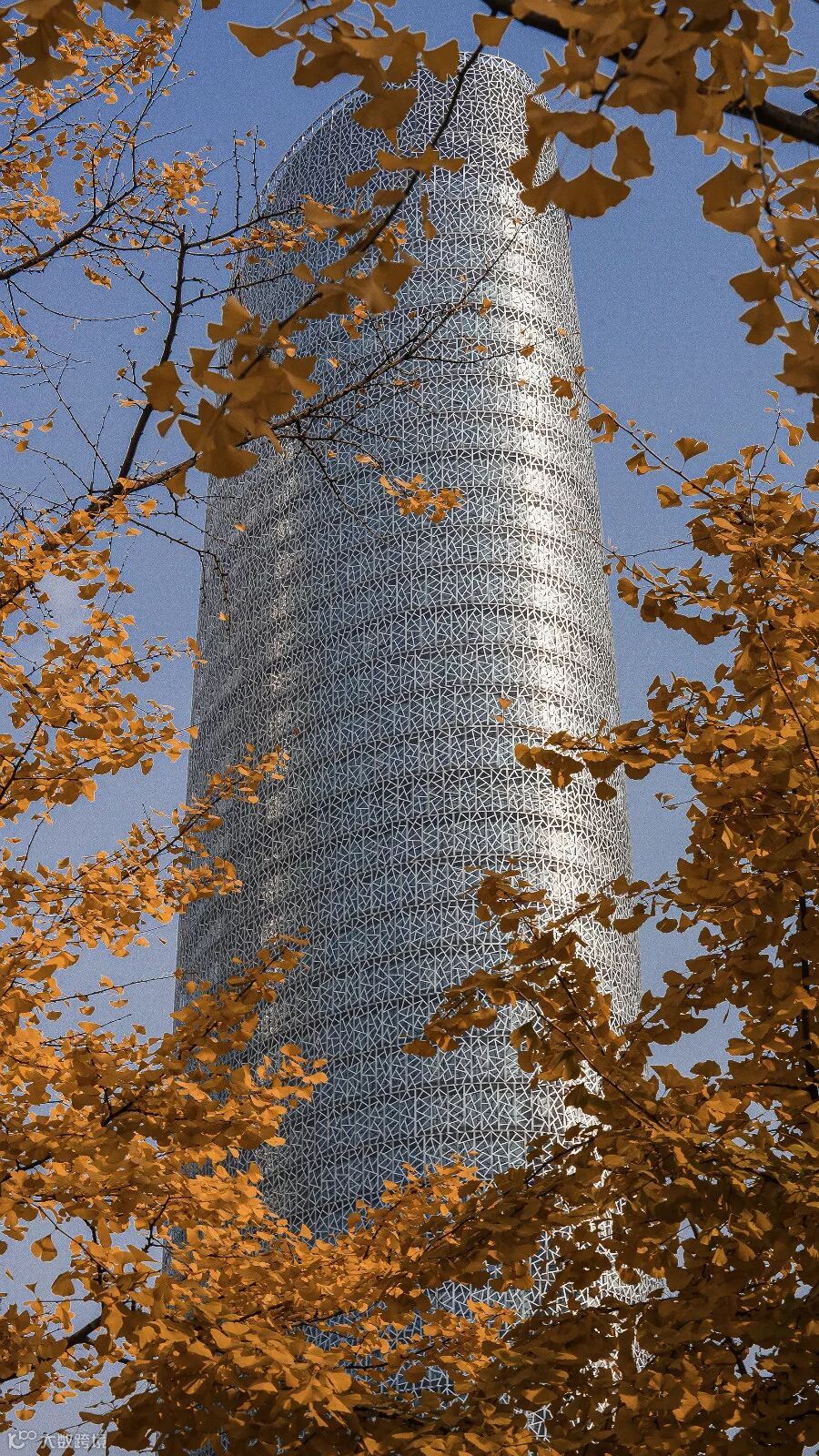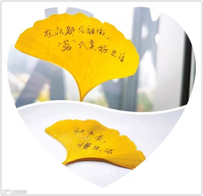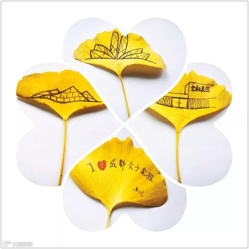 把成都金融城画在银杏叶上