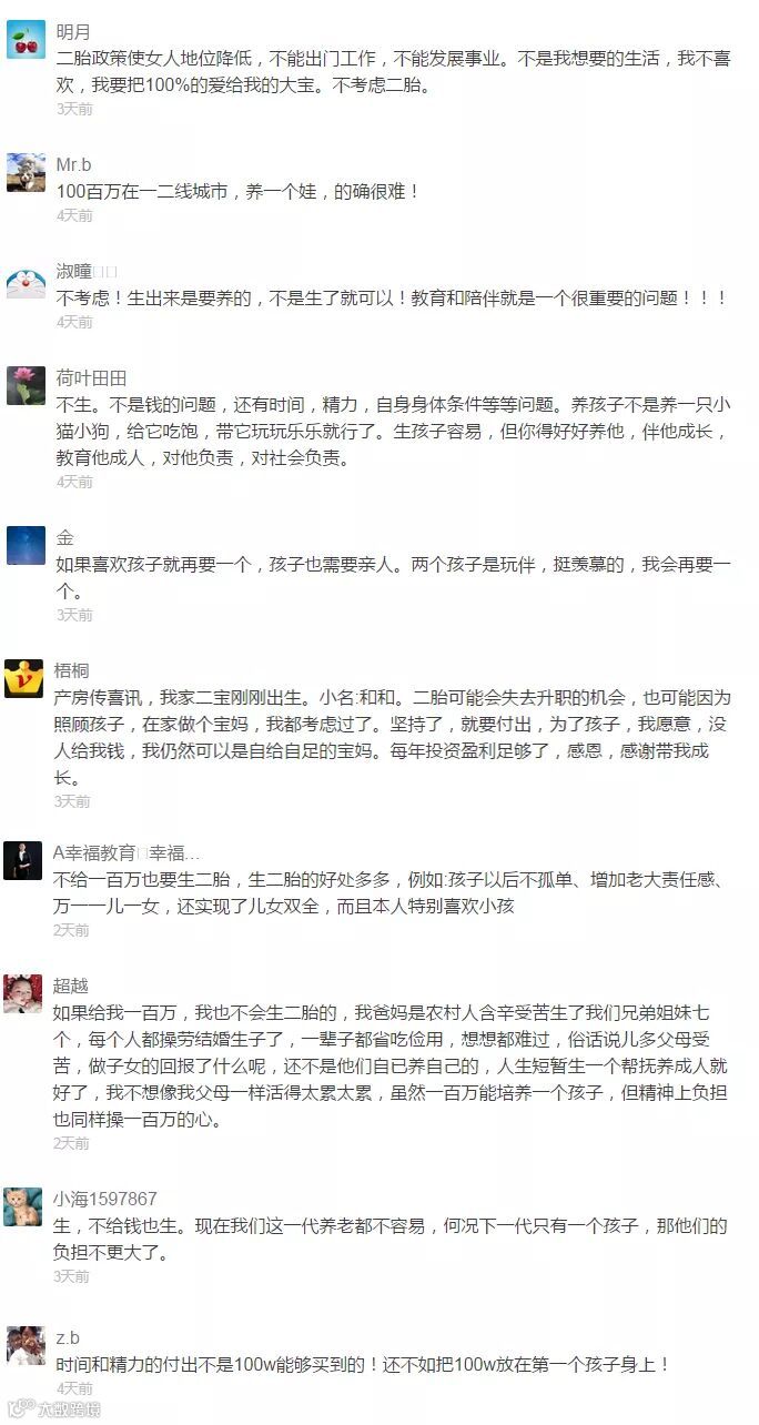 给你一百万,你生二胎吗?