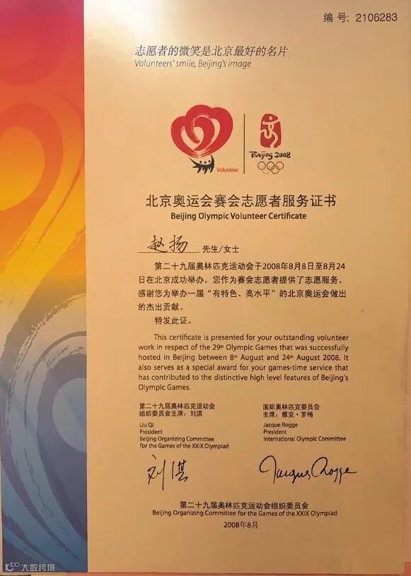 2007年,北京奥组委在川选拔100名赛会志愿者,经过四个多月的层层选拔,最终,赵扬凭借着自身的优势,从近五万人的激烈角逐中以第16名的成绩正式入选北京奥运会赛会志愿者。