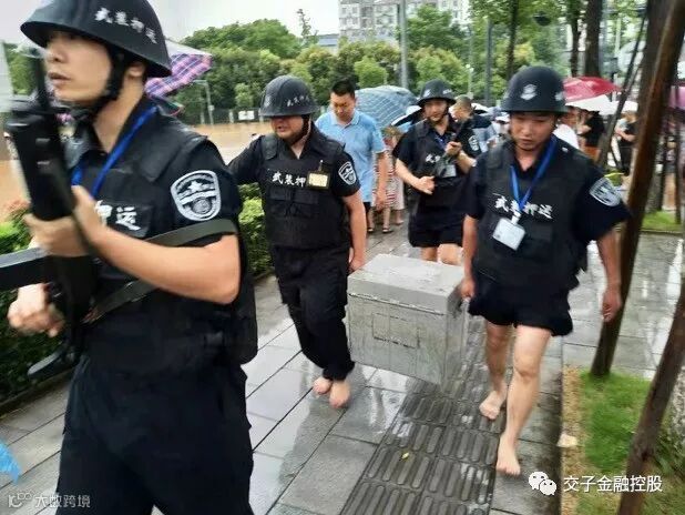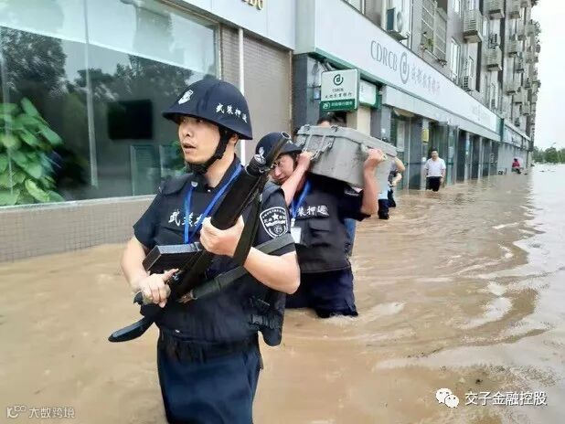 等中队长刘刚带领队员们来到网点后,才发现受灾程度比想象还要严重,洪水块接近人的腰部。“脱鞋子”!面对还不断涨高的水位,刘刚果断让队员们脱掉鞋子,把裤子挽起来,冲进银行网点转移现金收尾箱。